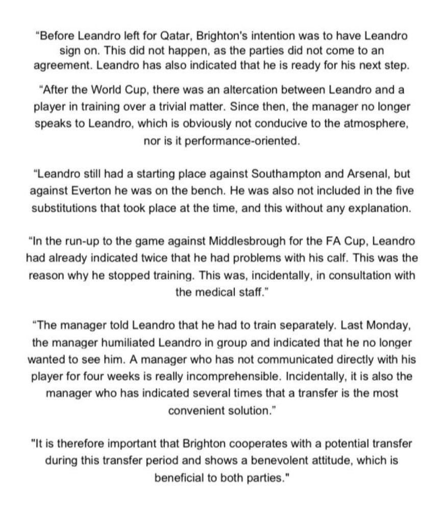 “On the Monday, I spoke with him and I explained I don’t like this attitude, this behaviour. He knows very well if he wants to play with Brighton with me, he has to work hard, he has to run, he has to be in the right way because we are not a big team, a Real Madrid, Barcelona or another big, big team. We are Brighton and we need players who work like the other players.”