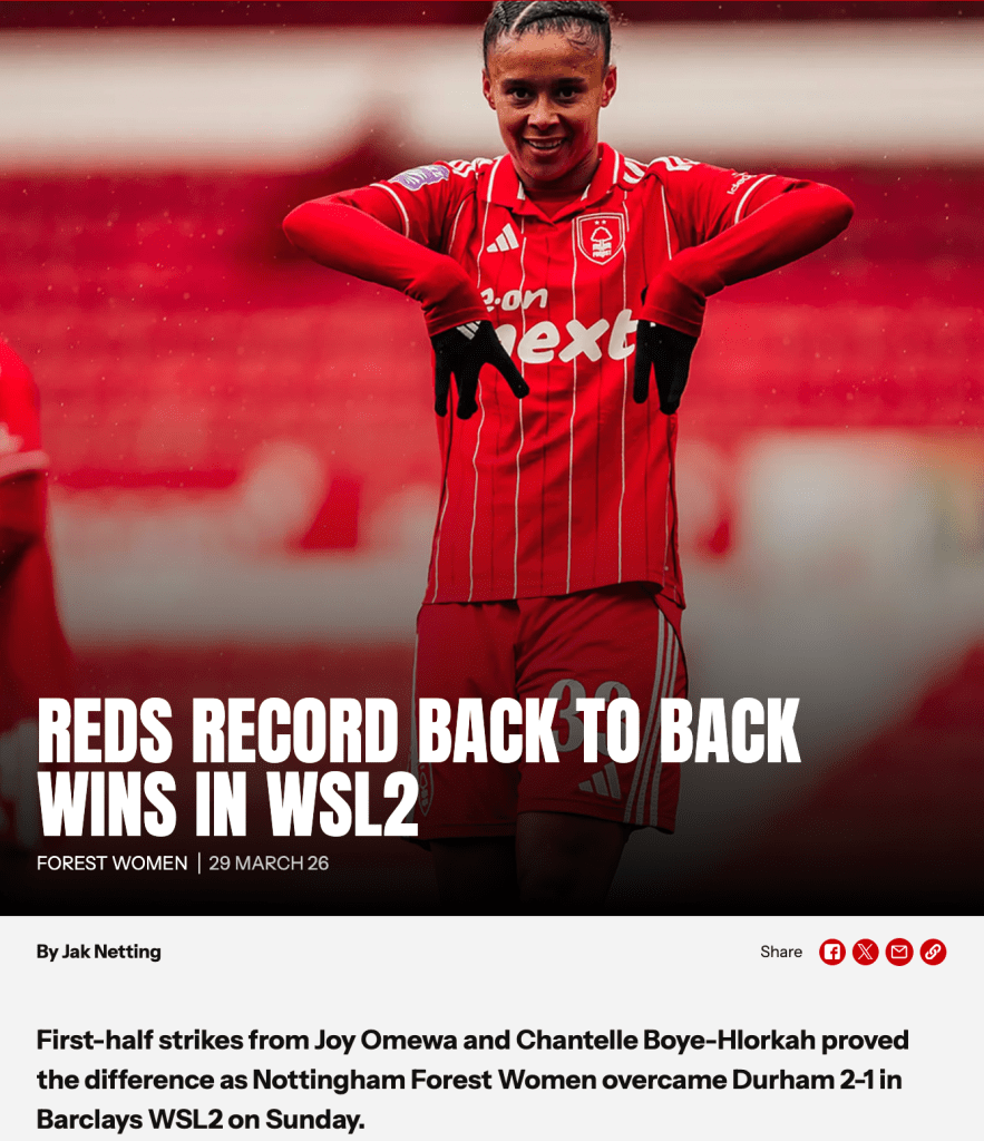 Alongside my studies in my final year at university, I have worked on a casual basis for Nottingham Forest, covering the club’s B Team and, at times, Women’s Team.