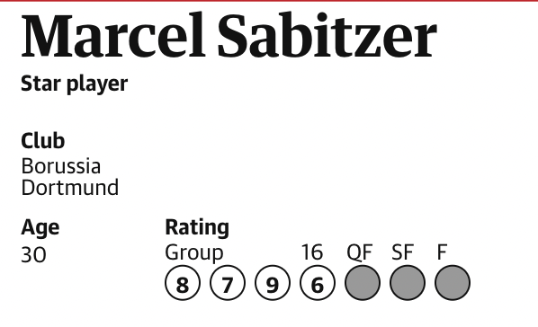 I was honoured to be chosen, alongside some of my university peers, to compile player ratings for The Guardian’s Euro 2024 player guide.